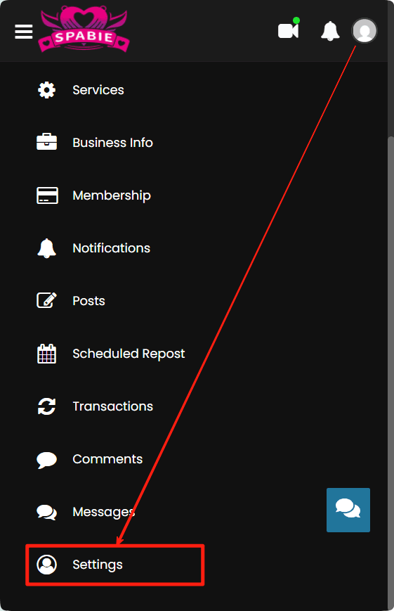 - Click on the Settings at the bottom of the menu;