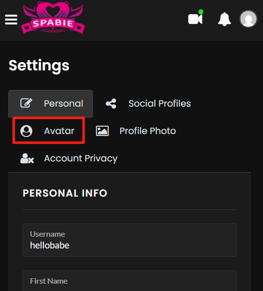 - Click on the Avatar tab then upload your avatar photo;