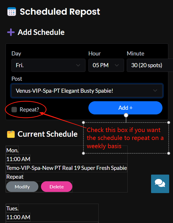 With SPABIE’s Scheduled Repost feature, you can plan ahead and keep your ads fresh without lifting a finger. Simply choose the times you want your post to reappear at the top, and we’ll handle the rest — helping you stay visible, attract more views, and get more bookings. Perfect for busy bees who want maximum exposure with minimum effort!